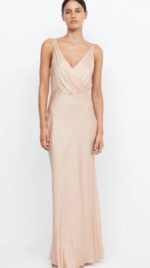 The Adore V Maxi Dress is cut on the bias from a twill fabric that skims over the body creating a flattering silhouette. The dress features front and back V-neck wrap detailing and a gathered blouson bodice before falling into a straight elegant skirt.