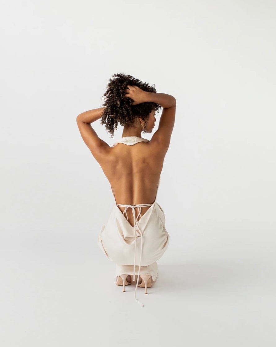 - Like a love letter to yourself, Daniella is the romance you need. Elegant meets sexy, She’s designed with a double lined bodice and décolleté finish. Cut on the bias for that signature low cowl back and effortless body flow. Removable satin bias ties are secured at the back to cinch in your waist and hug your hips.