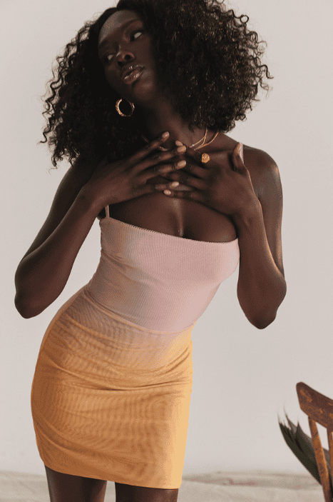 'Deva' zips up the back for easy on and the gradient of tangerine and peach hues will look so pretty this Summer paired with neutral heels.