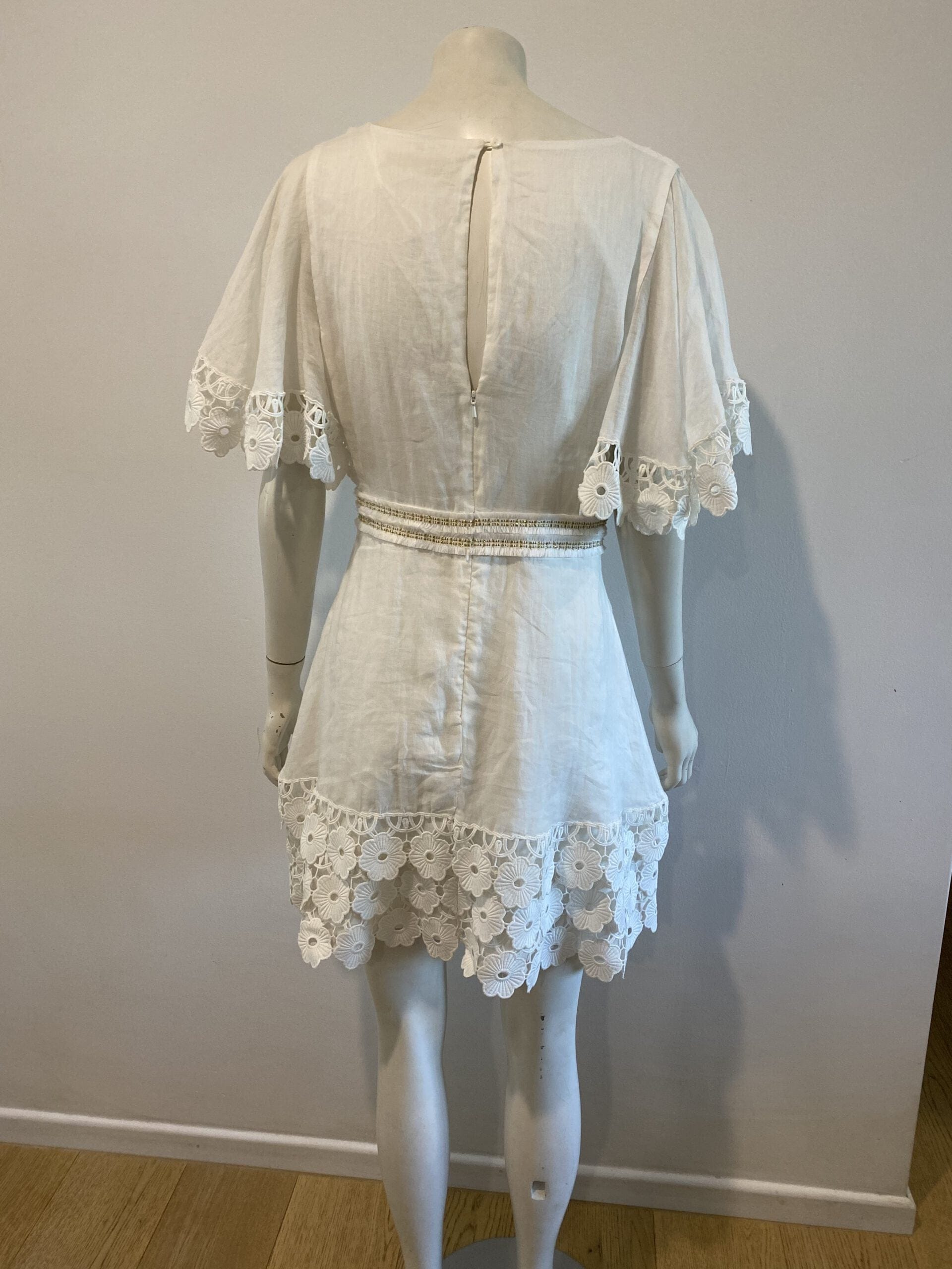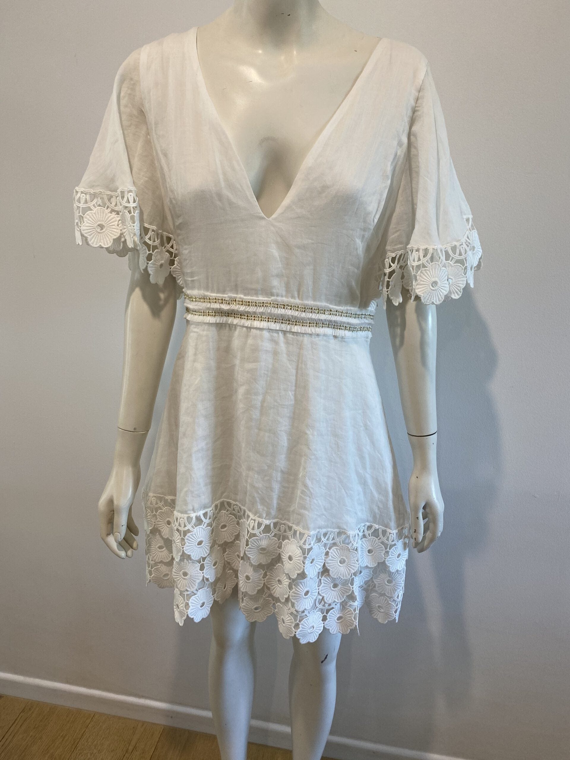- V neck with gold detail at waist and pretty detailed sleeves and hem line.